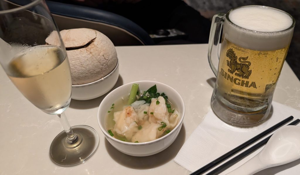 ココナッツジュースとワンタンスープも