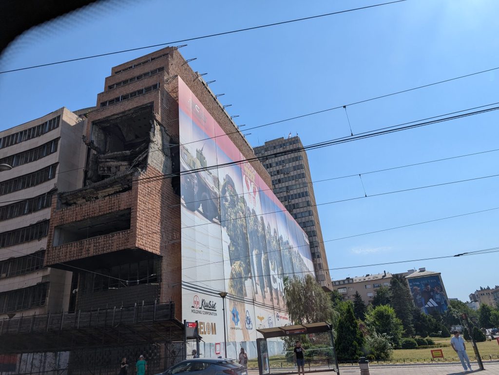 A1バスの車窓左側に見えるのが、旧ユーゴスラビア国防省ビルです。