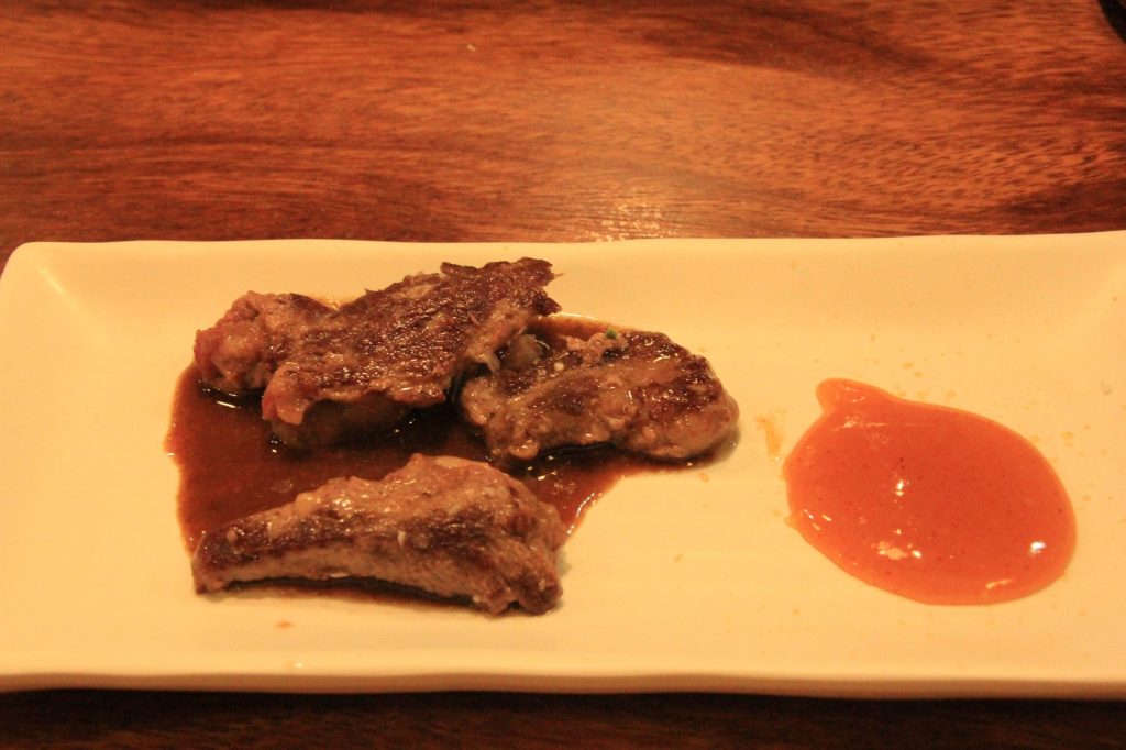 Tapa de pluma ibérica a la plancha con chutney de mango