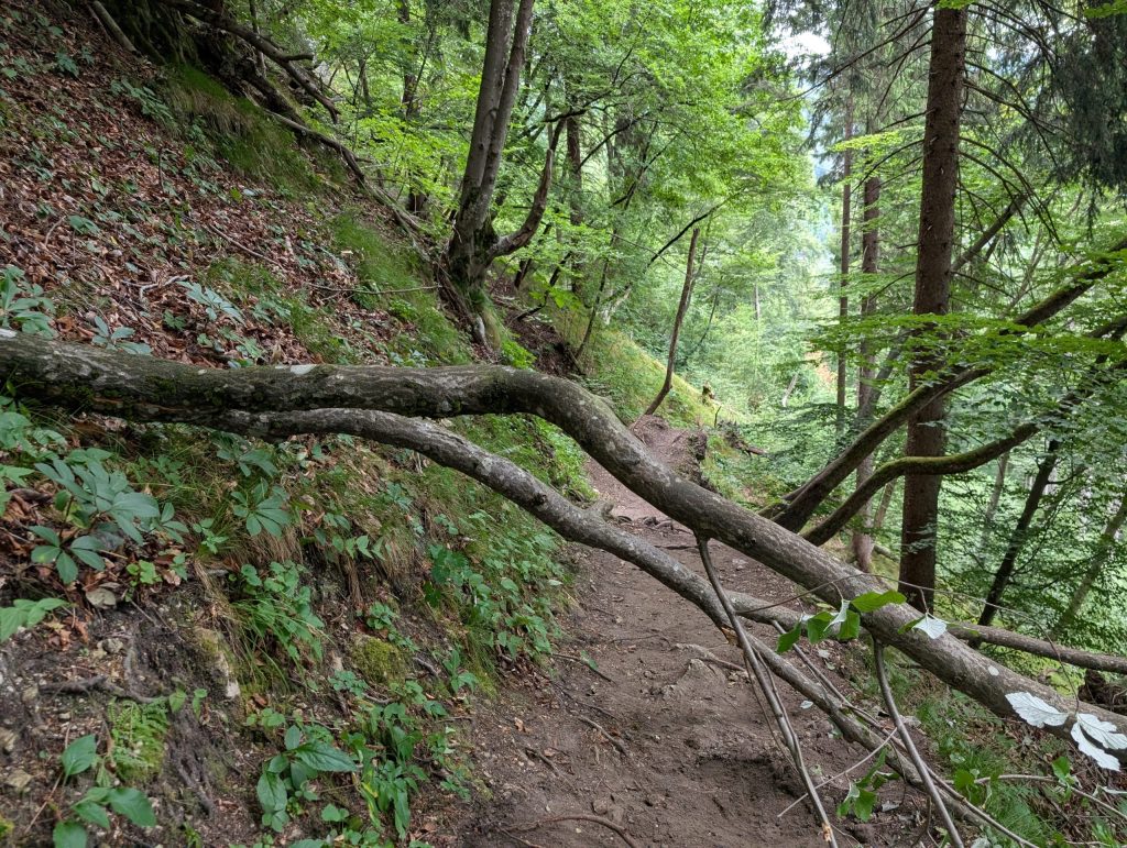 - 倒木を乗り越える箇所あり