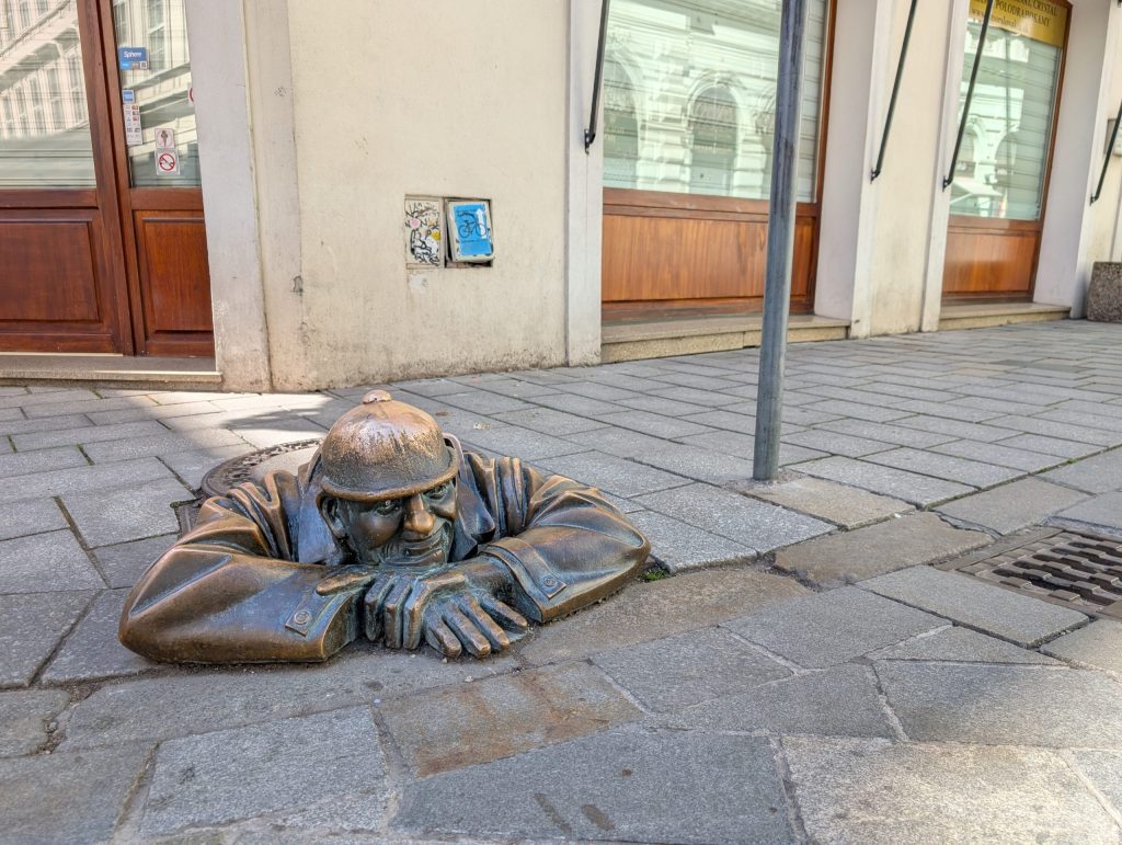 有名なのがマンホールから顔を出す像
