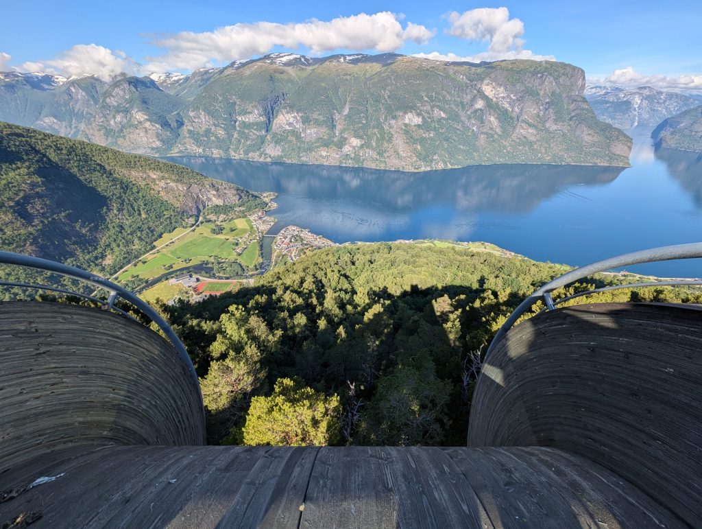 展望台はフィヨルドに向かって