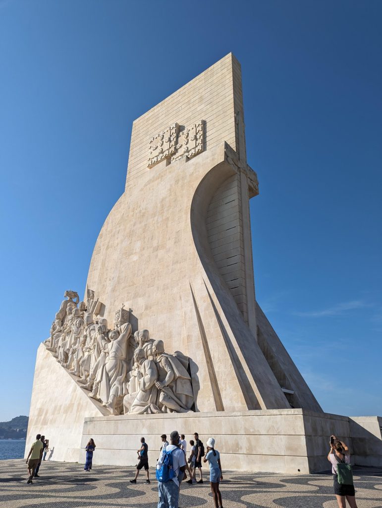 高さ52mの巨大なモニュメントは、船の船首(へさき)をモチーフにしたデザインで、先端にエンリケ王子が立ち、後ろにはヴァスコ・ダ・ガマをはじめとした大航海時代の偉人たちが続いています。