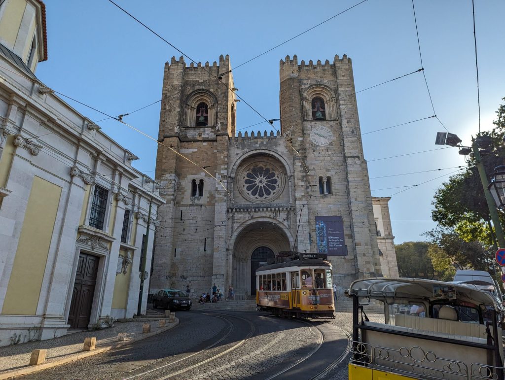 坂道にトラム——旧市街の教会でリスボンらしい一枚を