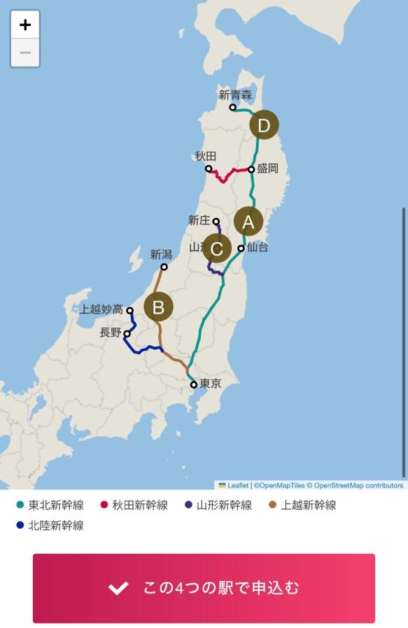 東北新幹線最北の新青森の場合、手前の駅全て行くことが可能